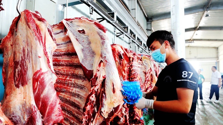 新疆牛肉產(chǎn)量達(dá)到49.37萬噸,居全國第五位,已形成南疆環(huán)塔里木盆地存欄200萬頭西門塔爾牛、北疆195萬頭新疆褐牛優(yōu)勢產(chǎn)區(qū)。