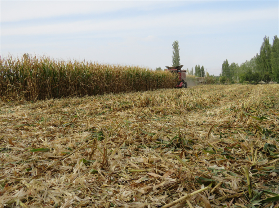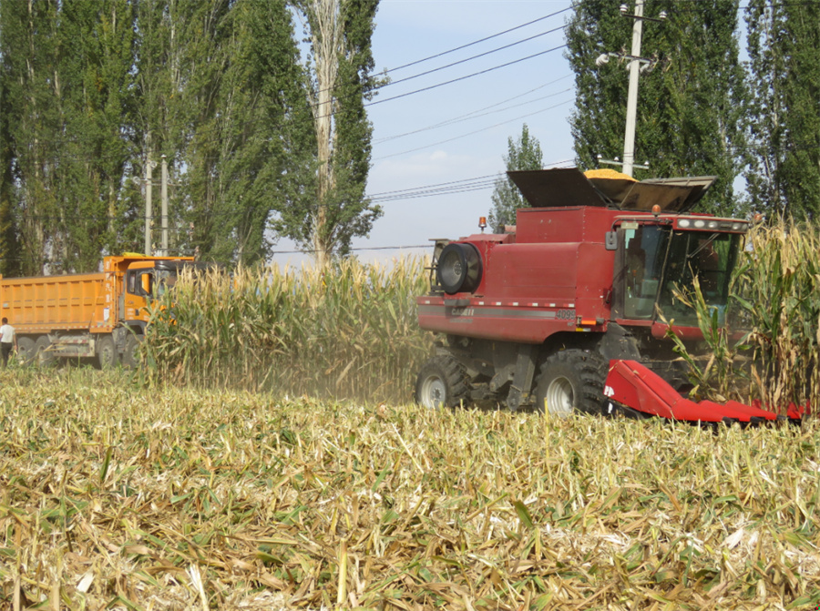 新疆和碩縣新塔熱鄉(xiāng)玉米喜獲豐收 農(nóng)民增收甜心頭