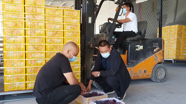 5月30日,在精河縣大河沿子鎮(zhèn)呼薩英鐵熱克村,十幾座大棚旁的公路上車水馬龍,游人如織,大家三五成群,忙著查看葡萄苗木長勢、清點(diǎn)數(shù)量,打包裝車。