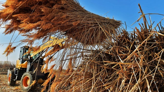 搶收忙!博斯騰湖60萬畝蘆葦變身“致富金稈”