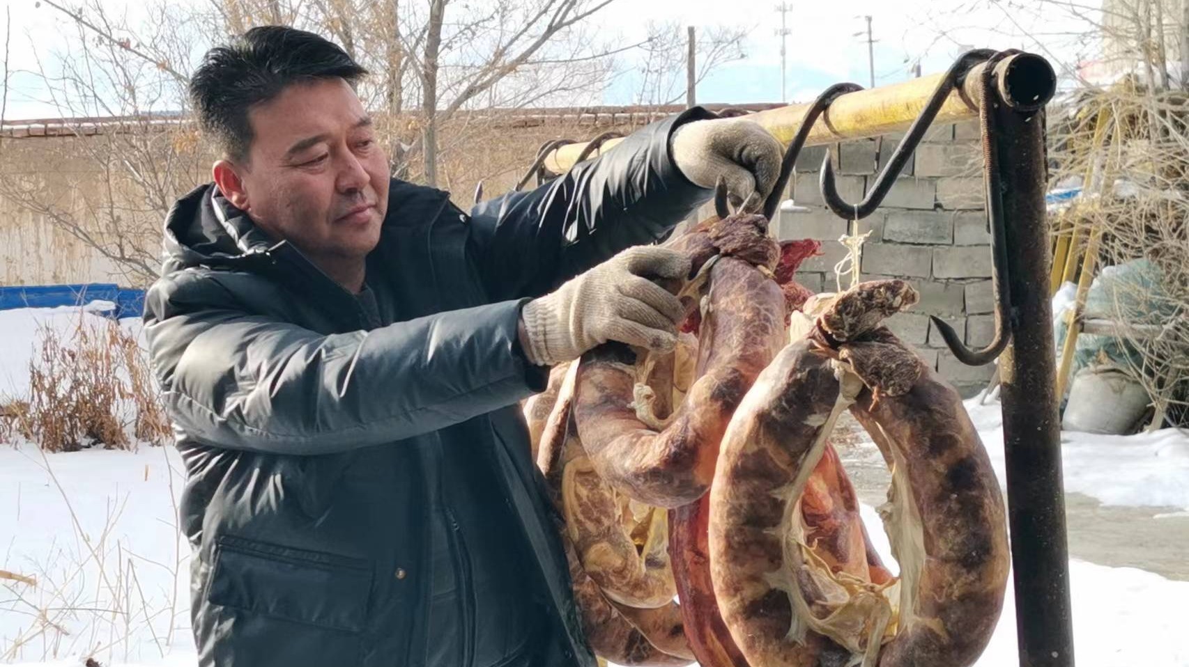 牧民別克·爾斯汗一年賣了10噸風干肉、馬腸