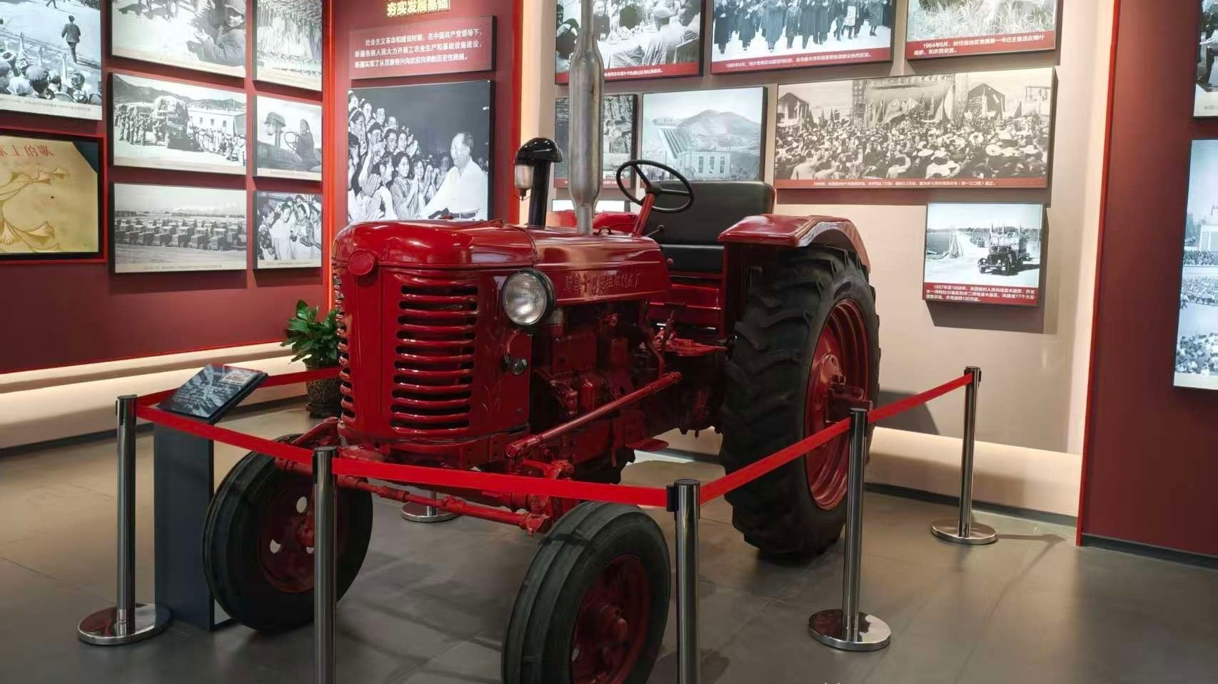 在新疆維吾爾自治區(qū)成立70周年主題成就展上,一臺名為“躍進(jìn)”的紅色24馬力輪式拖拉機(jī)吸引了不少參觀者的目光。大家紛紛與之合影留念,了解這個(gè)“鐵疙瘩”背后的光陰故事。