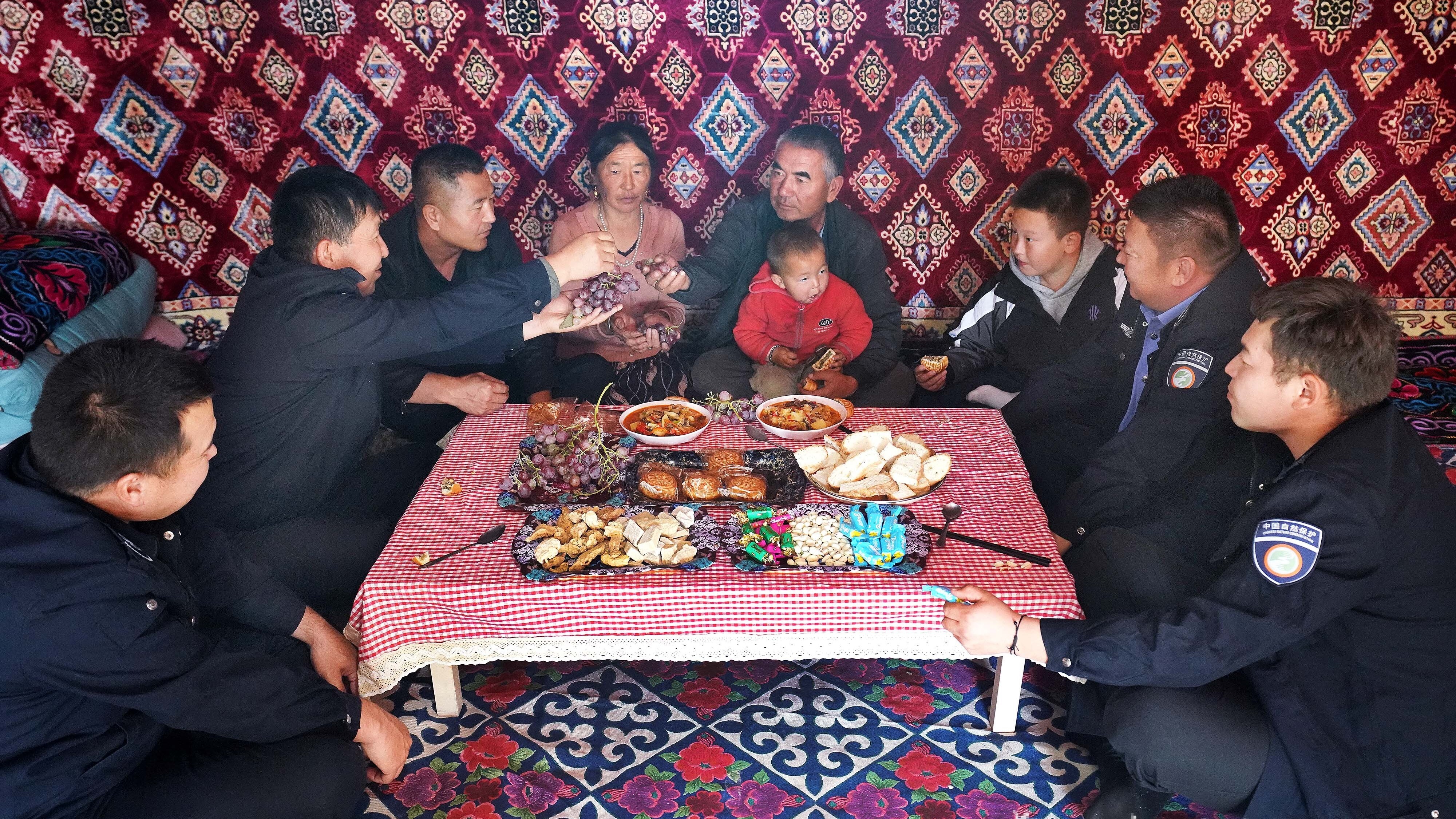 10月4日傍晚,夕陽為新疆甘家湖梭梭林國家級自然保護(hù)區(qū)的野生植被披上了一層柔和的金光。18時(shí),生態(tài)護(hù)林員葉爾森·努爾木和葉爾波力·阿德力別克結(jié)束巡護(hù)工作,與同事們一起驅(qū)車向牧民毛吾江·熱依木別克家駛?cè)ァ?