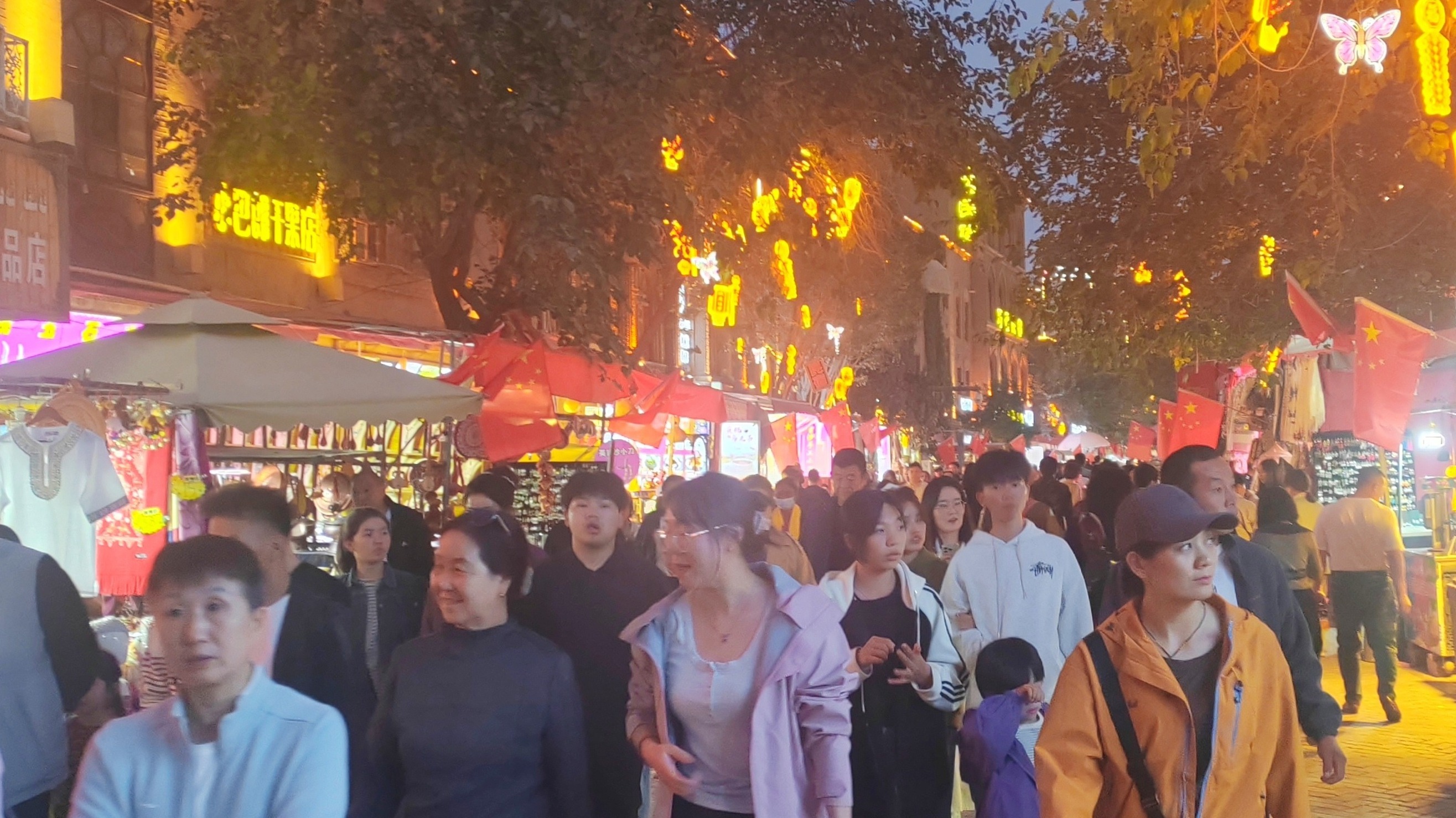 10月6日,烏魯木齊市和田二街洋溢著濃濃的煙火氣。來自全國各地的游客匯聚于此,品嘗著各色美食。游客們大多邊逛邊吃,不時(shí)駐足購買特色產(chǎn)品。