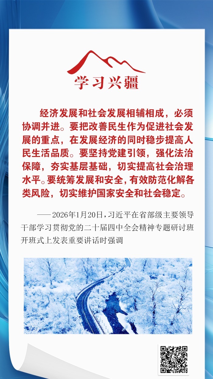 黨的十八大以來,以習近平同志為核心的黨中央總攬全局、科學決策,團結帶領全黨全國各族人民迎難而上、奮力拼搏,統(tǒng)籌國內(nèi)國際兩個大局,引領中國經(jīng)濟巨輪破浪前行。銳始者必圖其終,成功者先計于始。2026年是“十五五”開局之年,開好局起好步對今后工作具有重要意義。今天,讓我們一起學習領悟習近平經(jīng)濟思想,扎實推進經(jīng)濟高質(zhì)量發(fā)展。
