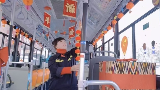 給公交車換“新年皮膚” 新疆這位公交姐的儀式感太暖了