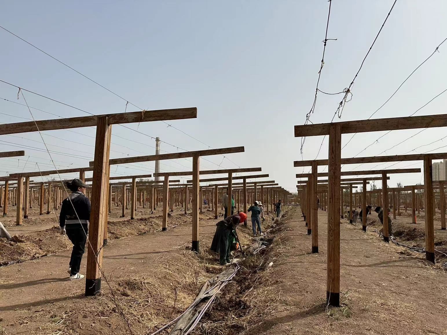 葡萄管護(hù)工人正在補(bǔ)種葡萄苗。黃文娟攝
