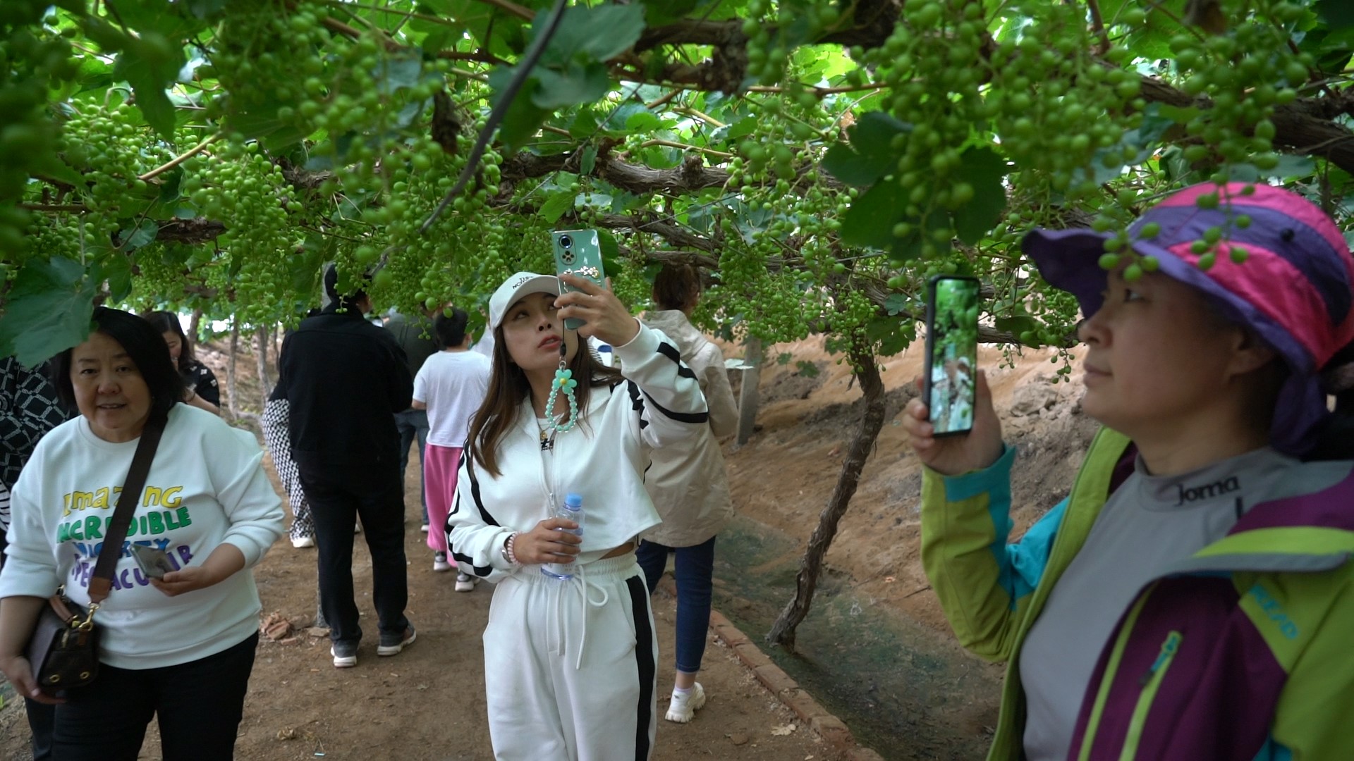 活動(dòng)中,電商主播們爭(zhēng)先選取最佳角度拍攝宣傳視頻,記錄了種植戶的葡萄種植管理和生長(zhǎng)情況,并利用網(wǎng)絡(luò)資源為卡格托爾村火焰無核葡萄進(jìn)行推廣宣傳。