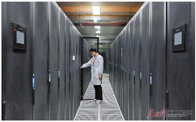 2月17日,運(yùn)維工程師在克拉瑪依云計(jì)算產(chǎn)業(yè)園區(qū)華為克拉瑪依云服務(wù)數(shù)據(jù)中心機(jī)房巡檢?!趵詈迫粩z