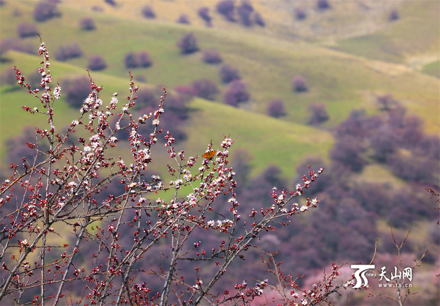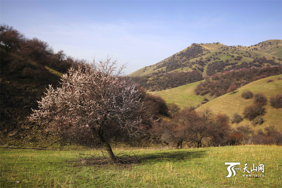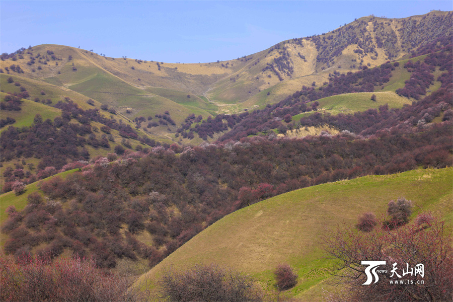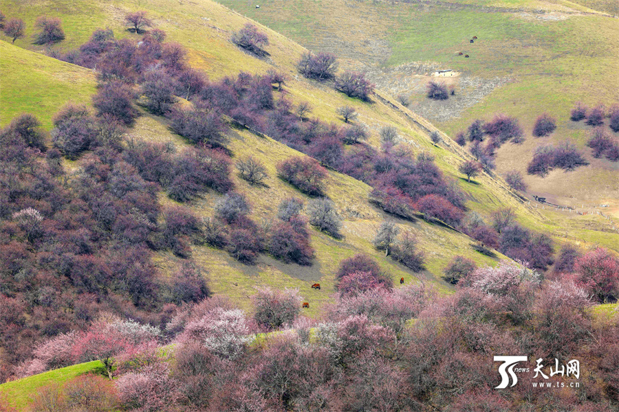 天山網(wǎng)訊(通訊員張文庭 肖伊紅 李金維 黑扎提攝影報道)2022年4月5日拍攝的新疆伊犁哈薩克自治州新源縣吐爾根鄉(xiāng)那拉提杏花谷杏花漫山遍野綻放,令人陶醉。連日來,隨著氣溫不斷升高,新源縣吐爾根鄉(xiāng)那拉提杏花谷幾萬畝野杏林杏花開始次第綻放,返青的山坡上一簇簇的粉色格外亮眼,吸引不少游客前來踏青游覽。據(jù)了解,再有3至5天時間,那拉提杏谷將迎來盛花期。