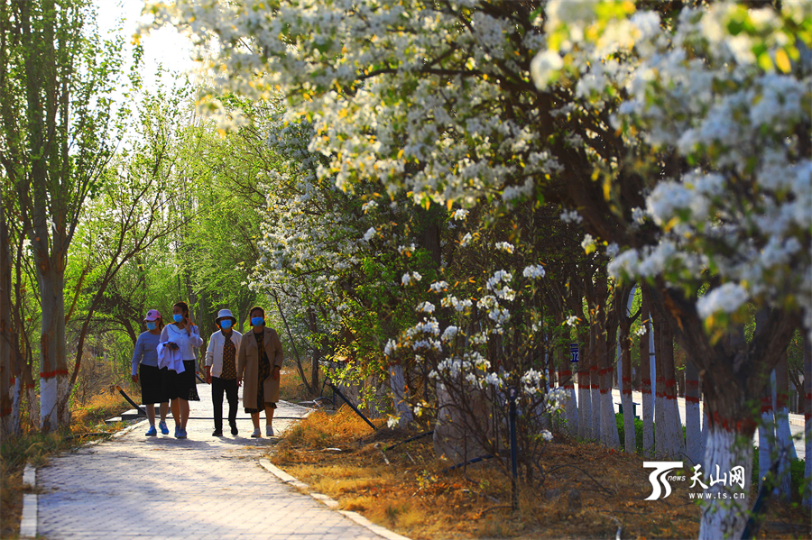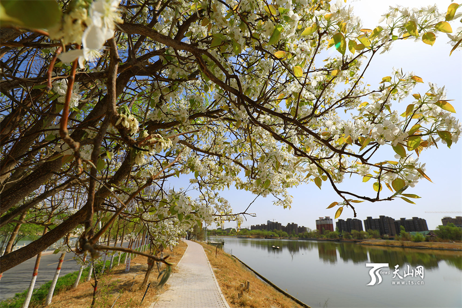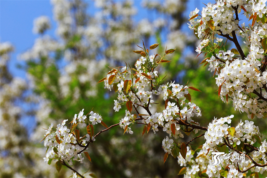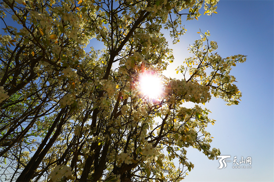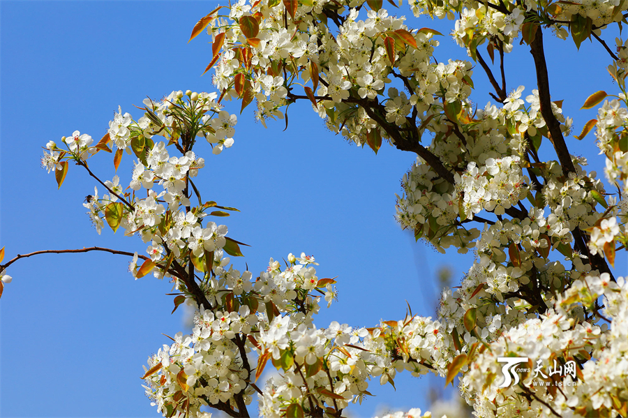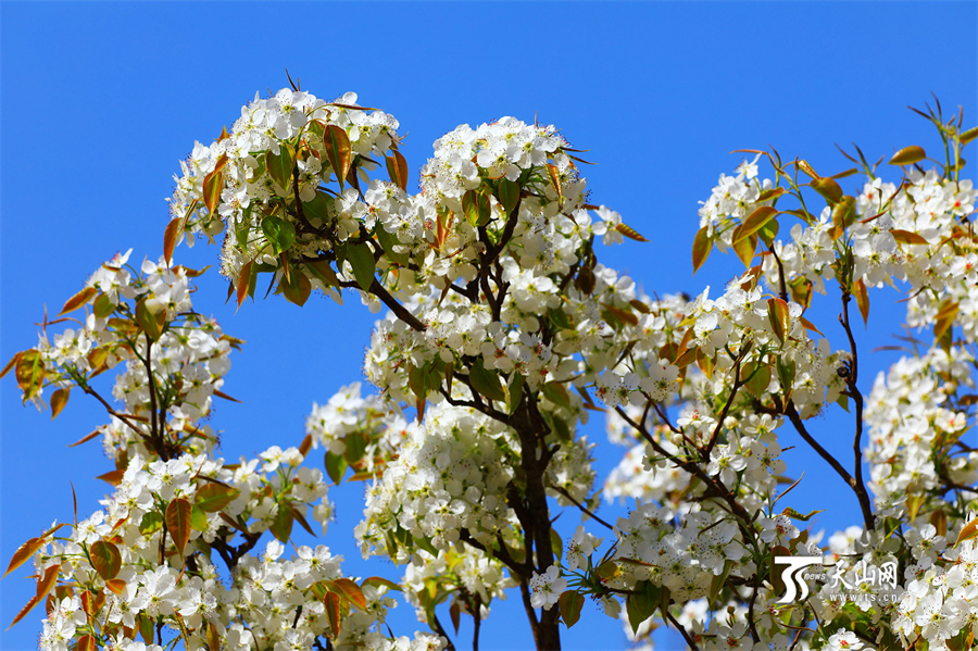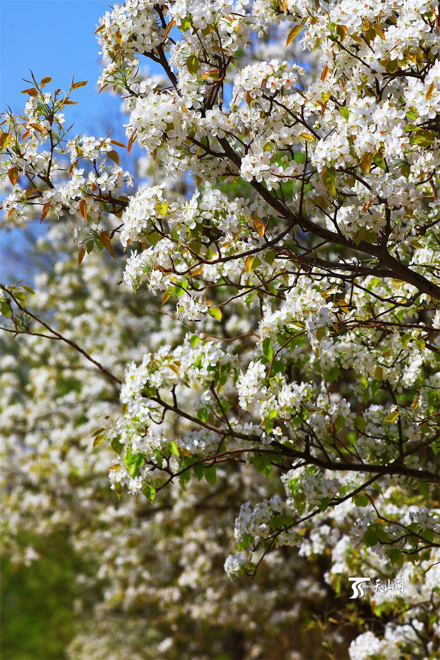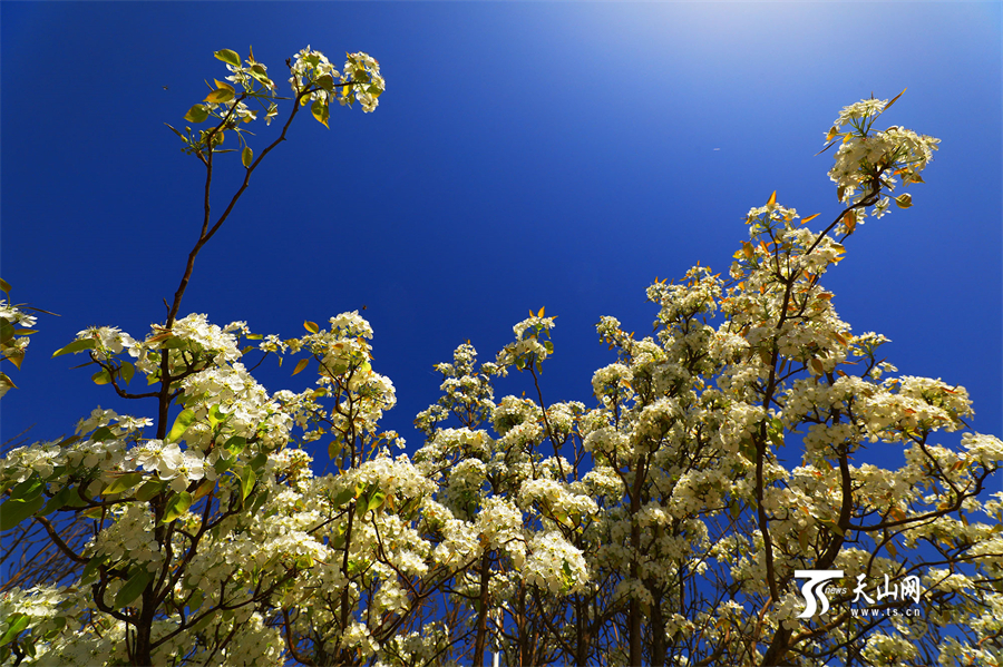 天山網訊(通訊員李靖海攝影報道)最美人間四月天。近日,在新疆吐魯番市托克遜縣白楊河畔,梨花競相綻放,香氣怡人。漫步白楊河畔,湛藍的天空下,綻放的梨花一簇簇一層層,花白似雪,隨風搖曳,美不勝收。