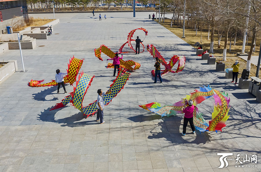 天山網(wǎng)訊(通訊員田國(guó)建攝影報(bào)道)4月4日,市民在克拉瑪依市體育館西側(cè)練習(xí)舞龍。隨著氣溫逐步回升,很多市民紛紛來(lái)到戶外,開(kāi)展舞龍、徒步、滑旱冰等活動(dòng),增強(qiáng)體質(zhì)。