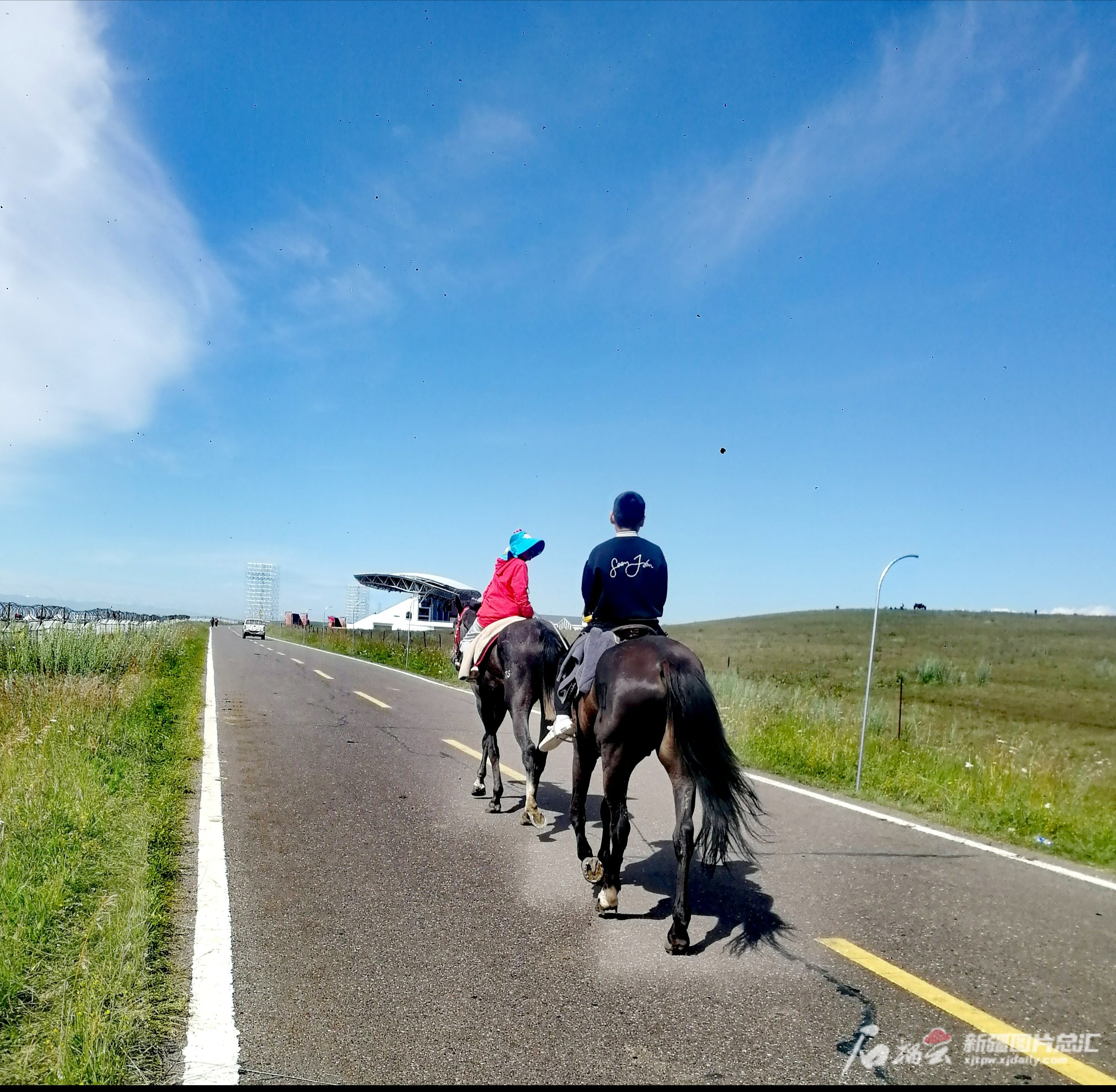 在昭蘇,兩名少年騎馬走在路上。 天山網(wǎng)-新疆日?qǐng)?bào)記者賈春霞 攝