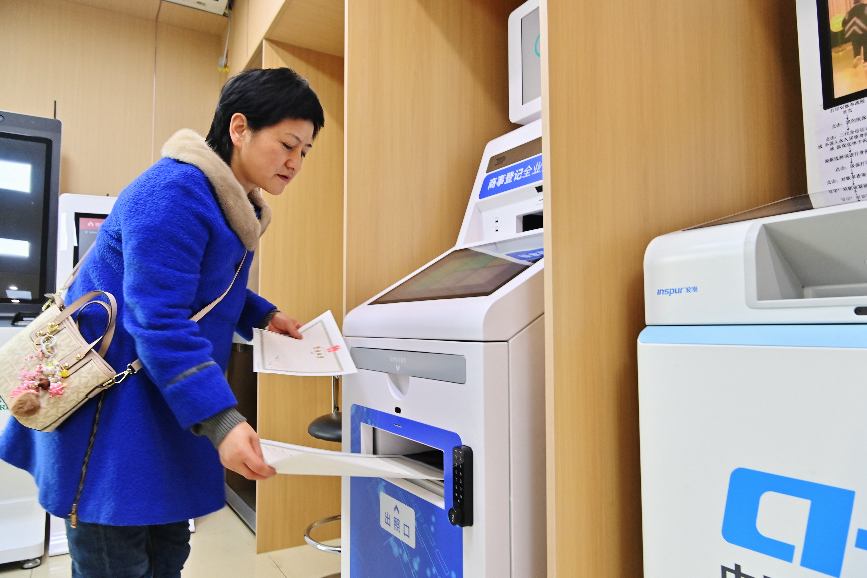 3月17日,市民在24小時(shí)政務(wù)自助服務(wù)專區(qū)打印營(yíng)業(yè)執(zhí)照。天山網(wǎng)-新疆法治報(bào)記者 單坤攝
