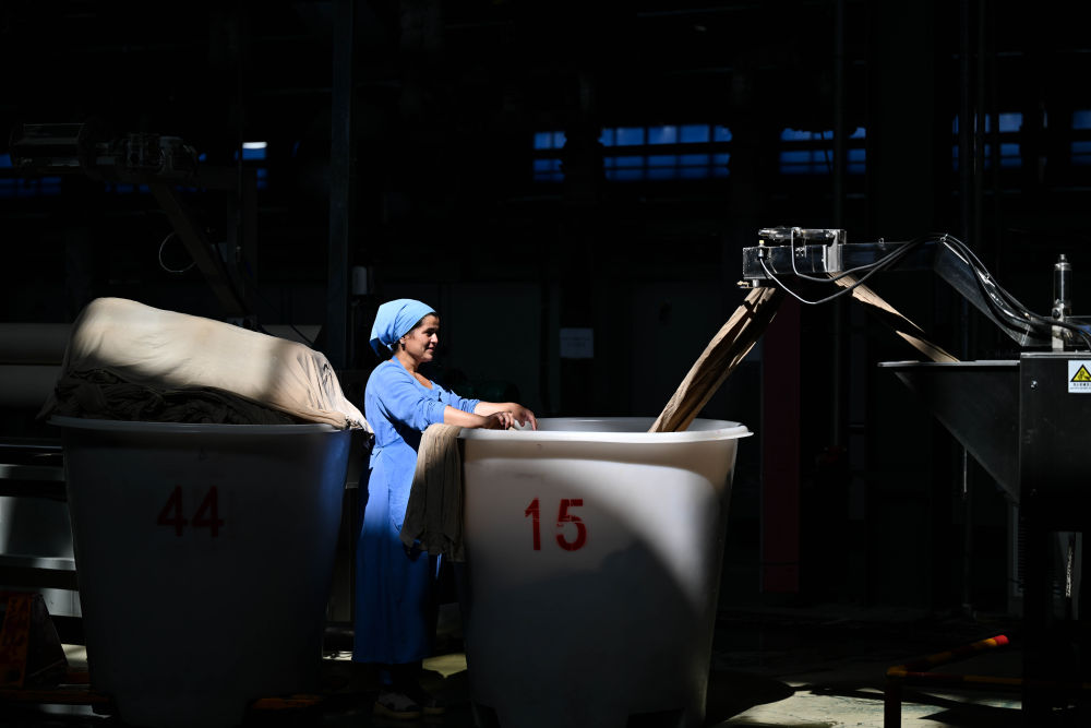 塔方員工在中塔合作項(xiàng)目丹加拉農(nóng)業(yè)紡織產(chǎn)業(yè)園的印染車間工作。