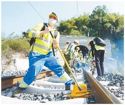 線路工夜間堅(jiān)守崗位,保障軌道線路安全順暢