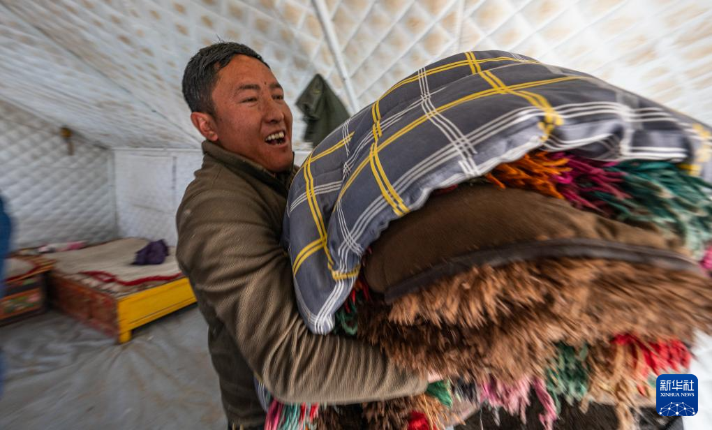 在定結(jié)縣郭加鄉(xiāng)乃村集中安置點(diǎn),村民在搬家(1月11日攝)。新華社記者 丁增尼達(dá) 攝