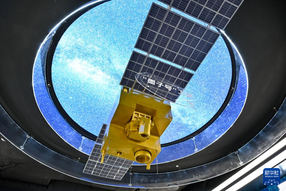 這是在中電信量子信息科技集團(tuán)有限公司的科技體驗(yàn)館內(nèi)拍攝的“墨子號”量子衛(wèi)星模型(7月1日攝)。新華社記者 張鋮 攝