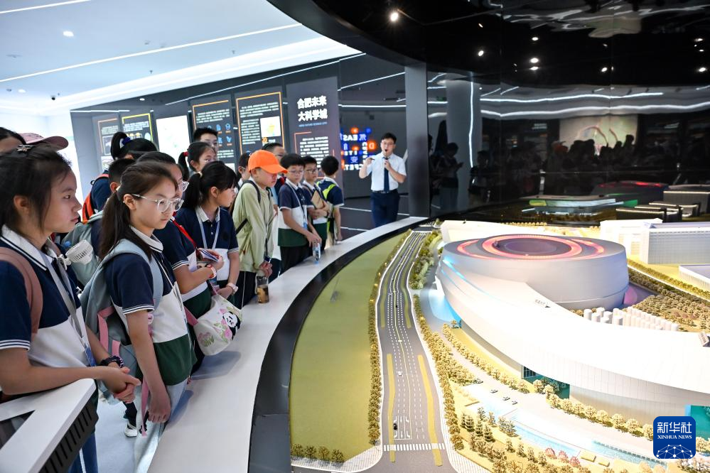 7月1日,學(xué)生們在聚變創(chuàng)新展覽館內(nèi)的緊湊型聚變能實(shí)驗(yàn)裝置(BEST)模型前參觀學(xué)習(xí)。新華社記者 張鋮 攝
