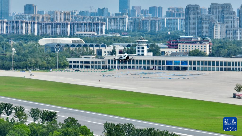 7月2日,一架電動垂直起降飛行器(eVTOL)在合肥駱崗公園演示飛行(無人機(jī)照片)。新華社記者 周牧 攝