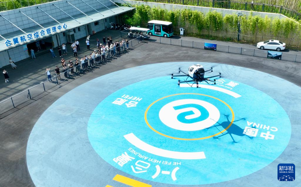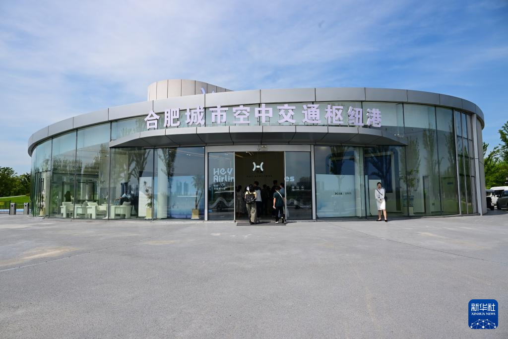 7月2日,一架電動垂直起降飛行器(eVTOL)停放在合肥城市空中交通樞紐港。新華社記者 周牧 攝