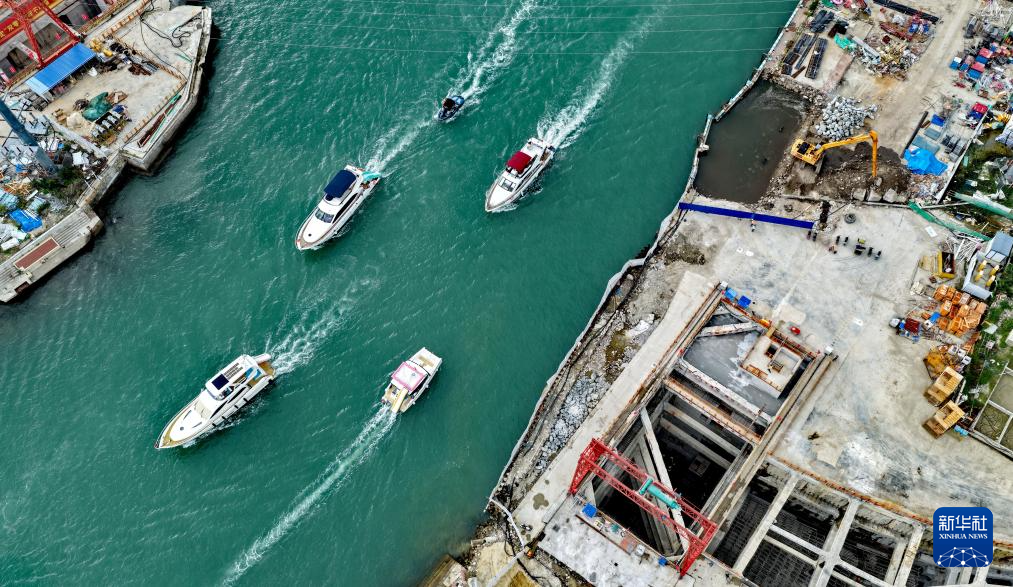12月5日,游艇從三亞河口通道工程項(xiàng)目上駛過。新華社記者趙穎全攝