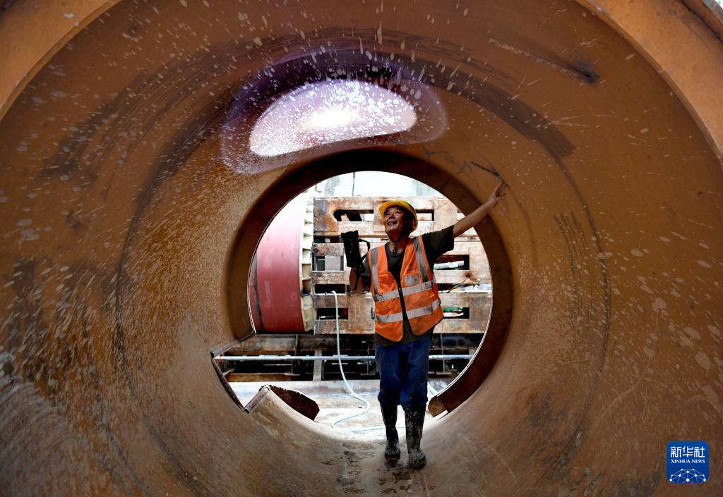 12月5日,工人在三亞河口通道工程項(xiàng)目現(xiàn)場(chǎng)檢查貫通管相鄰管節(jié)狀態(tài)。新華社記者趙穎全攝