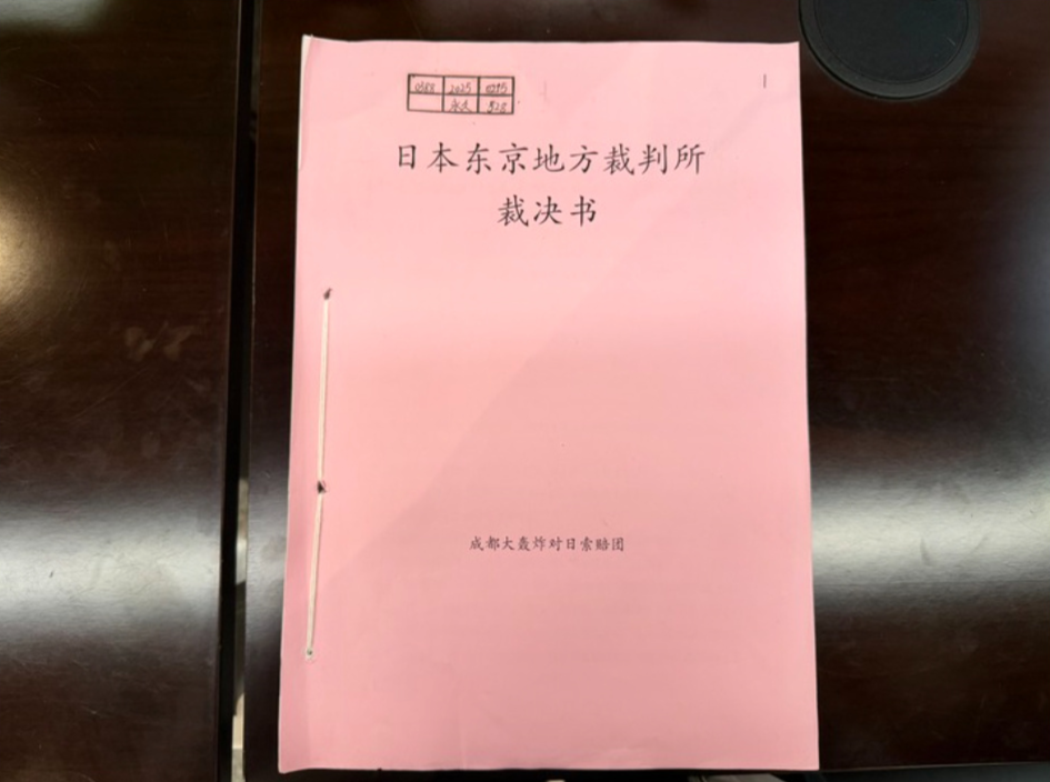 日本東京地方法院對(duì)西南地區(qū)大轟炸中國(guó)受害者對(duì)日訴訟案的一審判決書原件。新華社記者 唐文豪 攝