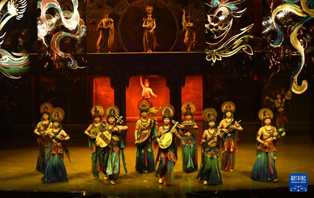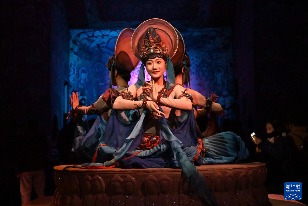 1月9日晚,樂動(dòng)敦煌(敦煌)文化旅游產(chǎn)業(yè)發(fā)展有限公司的演員在大型洞窟沉浸式體驗(yàn)劇《樂動(dòng)敦煌》中表演。新華社發(fā)(張曉亮 攝)