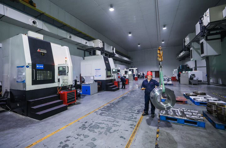 在浙江省諸暨市璜山鎮(zhèn)的申科滑動(dòng)軸承股份有限公司軸承智能車間內(nèi),自動(dòng)化設(shè)備在加工軸承(2026年1月20日攝)。新華社記者 徐昱 攝