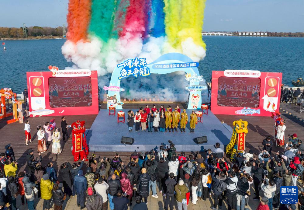 1月31日,2026溱湖灣冬捕活動在江蘇省泰州市姜堰區(qū)溱湖灣舉辦,漁民們在溱湖水域開展冬捕作業(yè),湖區(qū)水域呈現(xiàn)出一派人歡魚躍的豐收景象。