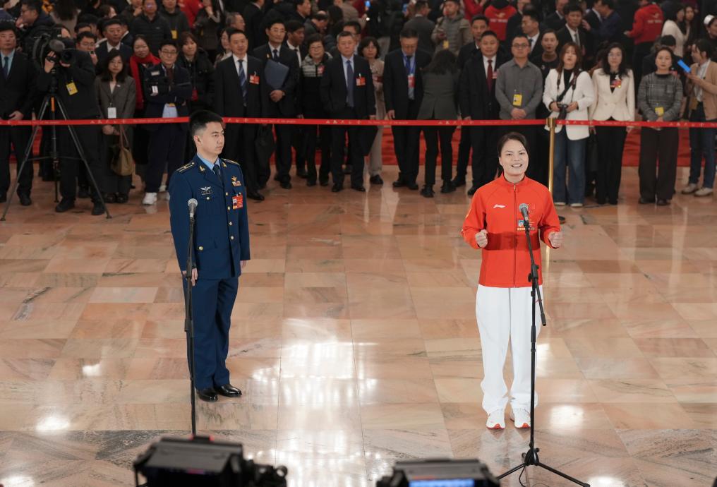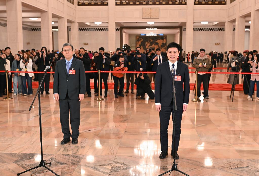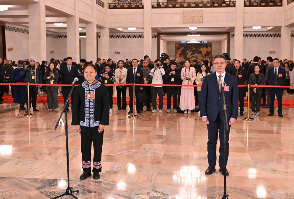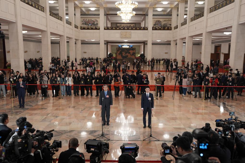 3月5日,第十四屆全國人民代表大會第四次會議首場“代表通道”集中采訪活動在北京人民大會堂舉行。新華社記者 王曦 攝