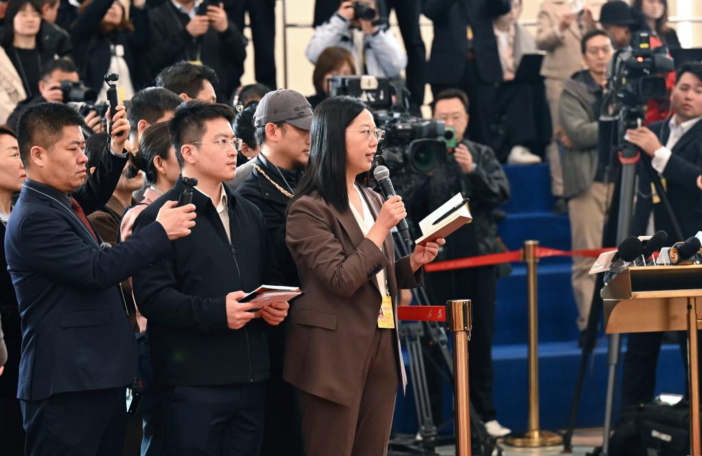 3月9日,第十四屆全國(guó)人民代表大會(huì)第四次會(huì)議第二場(chǎng)“部長(zhǎng)通道”集中采訪活動(dòng)在北京人民大會(huì)堂舉行。這是記者在現(xiàn)場(chǎng)提問。新華社記者 蔡湘鑫 攝
