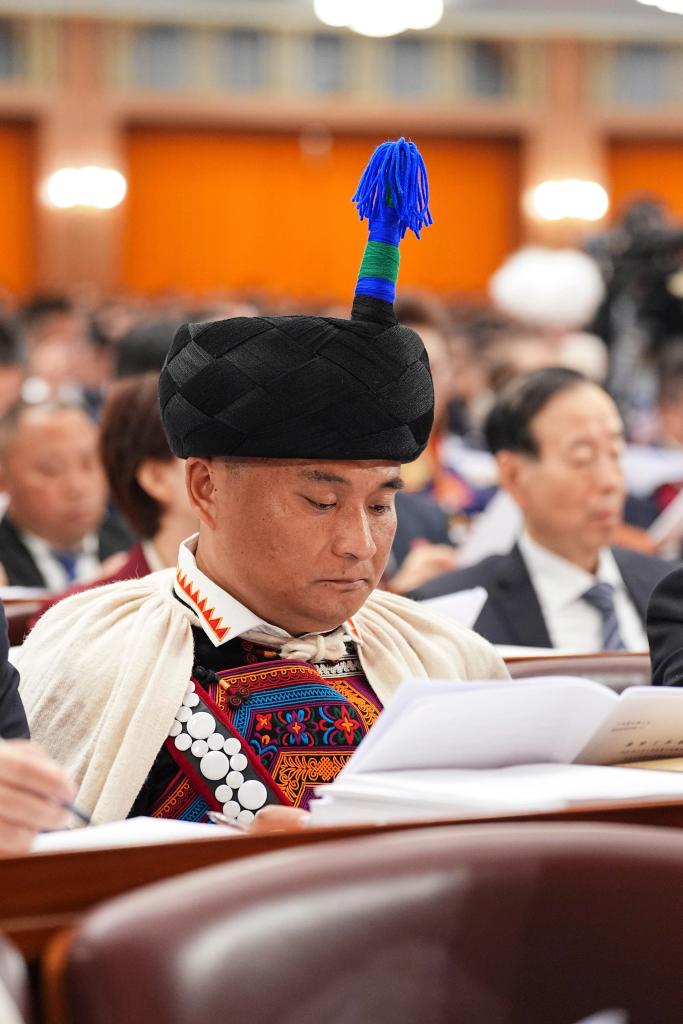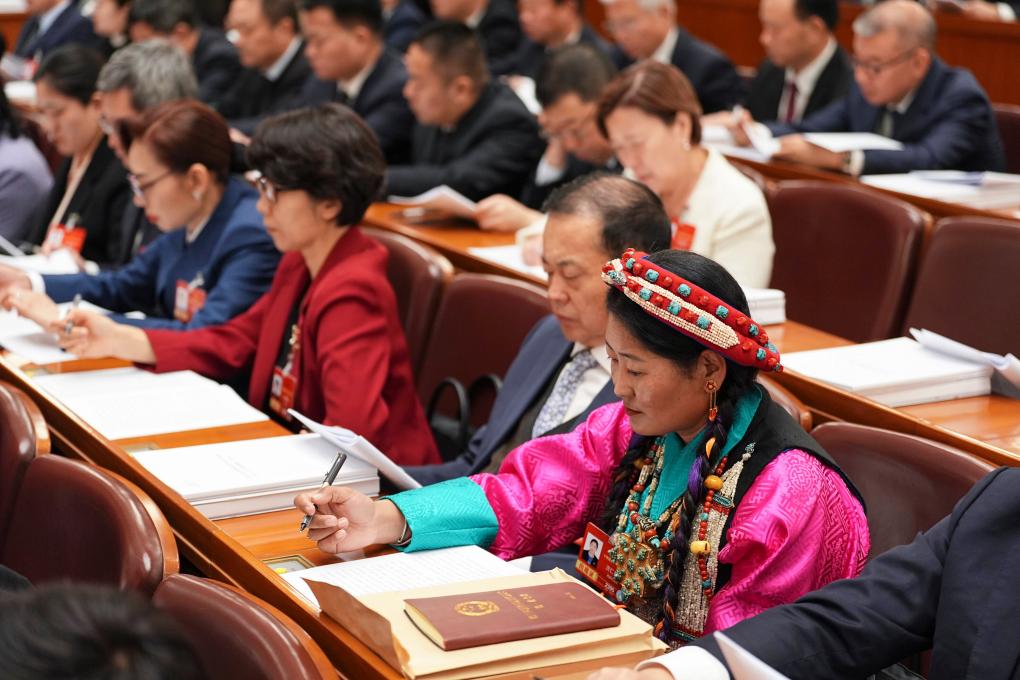 3月8日,全國政協(xié)委員羅布斯達(dá)出席全國政協(xié)十四屆四次會議第三次全體會議。新華社記者 陳益宸 攝