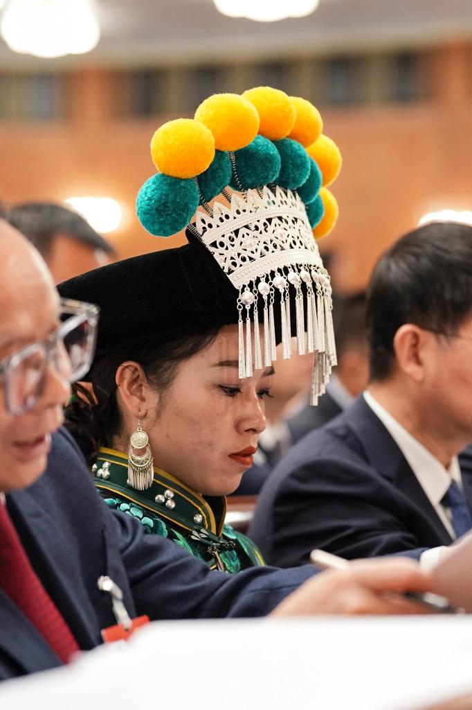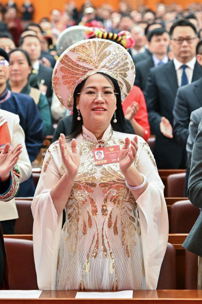 3月5日,全國人大代表郭紅靜出席十四屆全國人大四次會議開幕會。新華社記者 邢廣利 攝