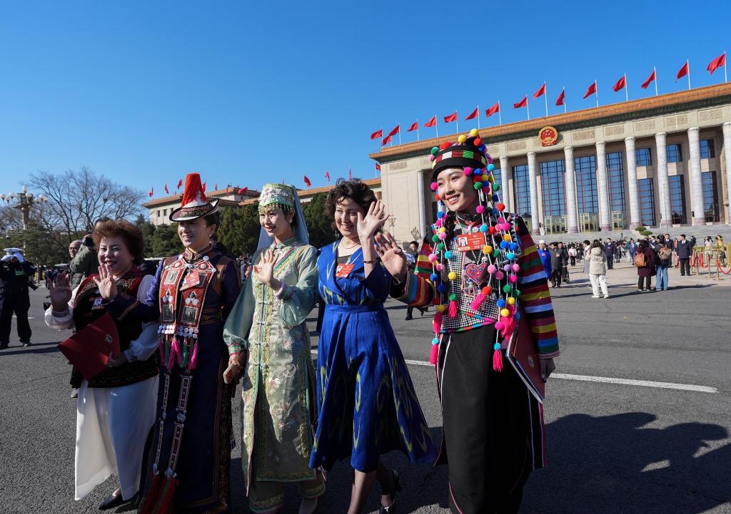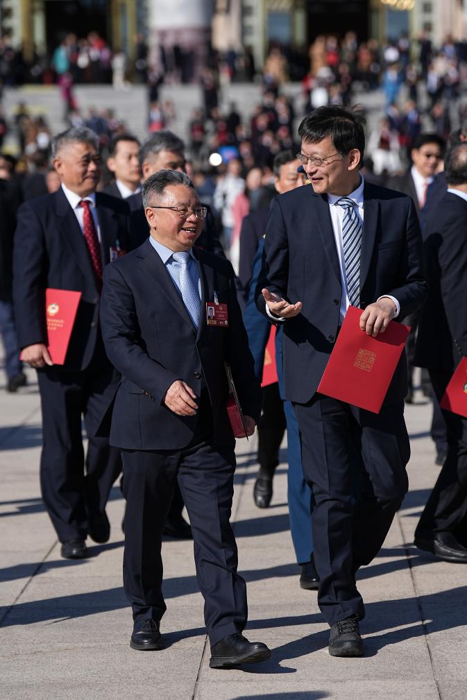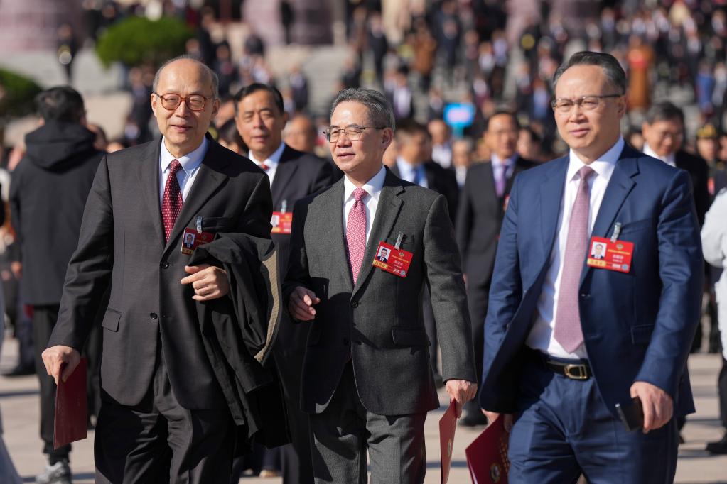 3月11日,全國政協(xié)十四屆四次會議在北京人民大會堂舉行閉幕會。這是閉幕會后,委員們走出人民大會堂。新華社記者 陳益宸 攝