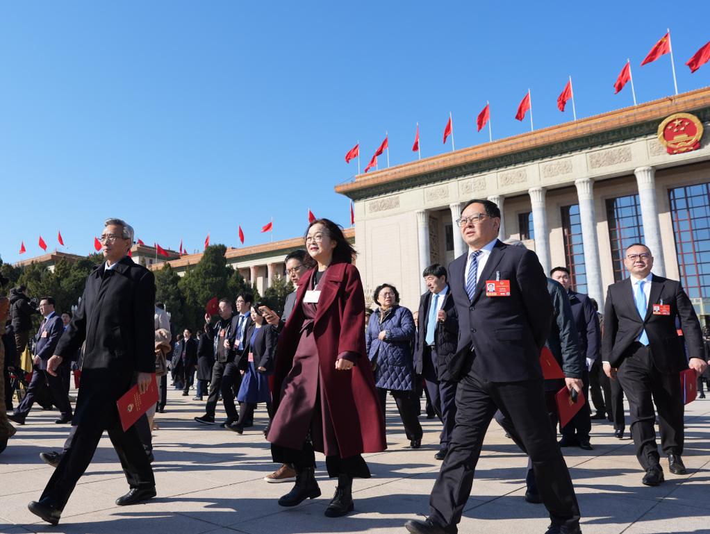 3月11日,全國政協(xié)十四屆四次會議在北京人民大會堂舉行閉幕會。這是閉幕會后,委員們走出人民大會堂。新華社記者 王曦 攝