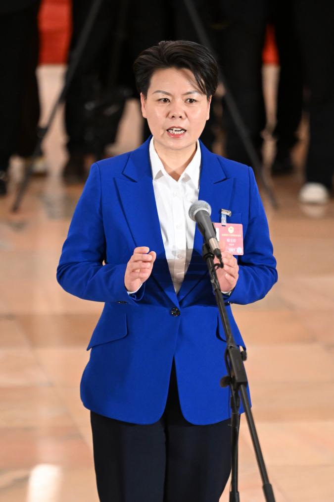 3月11日,全國政協(xié)十四屆四次會議第三場“委員通道”集體采訪活動在北京人民大會堂舉行。這是全國政協(xié)委員程玉珍接受媒體采訪。新華社記者 曹祎銘 攝