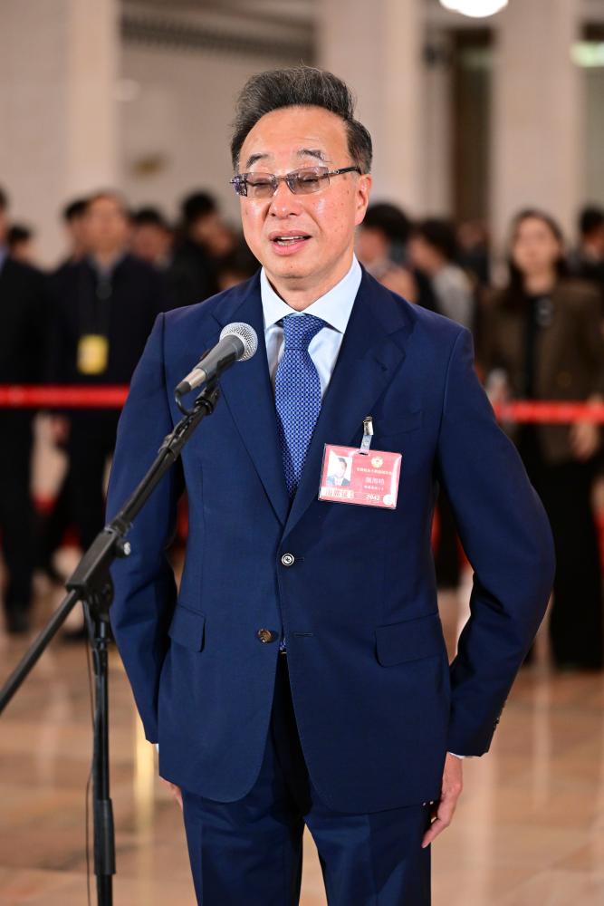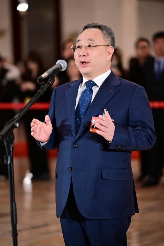 3月11日,全國政協(xié)十四屆四次會議第三場“委員通道”集體采訪活動在北京人民大會堂舉行。這是全國政協(xié)委員屠海鳴接受媒體采訪。新華社記者 陳曄華 攝