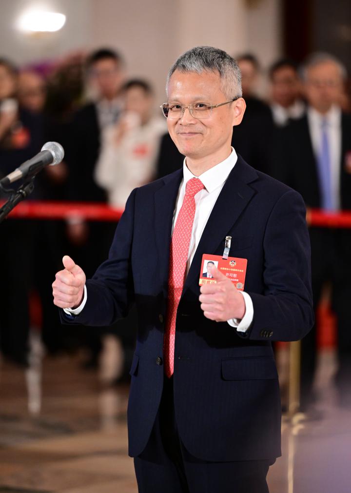 3月11日,全國政協(xié)十四屆四次會議第三場“委員通道”集體采訪活動在北京人民大會堂舉行。這是全國政協(xié)委員許可慰接受媒體采訪。新華社記者 陳曄華 攝
