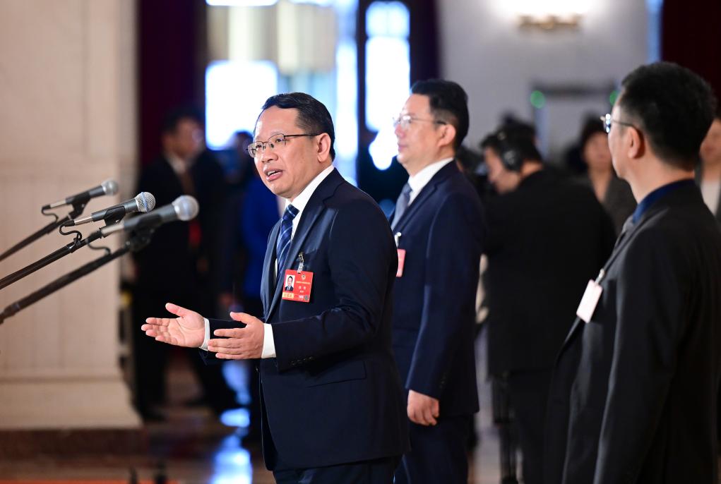 3月11日,全國政協(xié)十四屆四次會議第三場“委員通道”集體采訪活動在北京人民大會堂舉行。新華社記者 陳曄華 攝