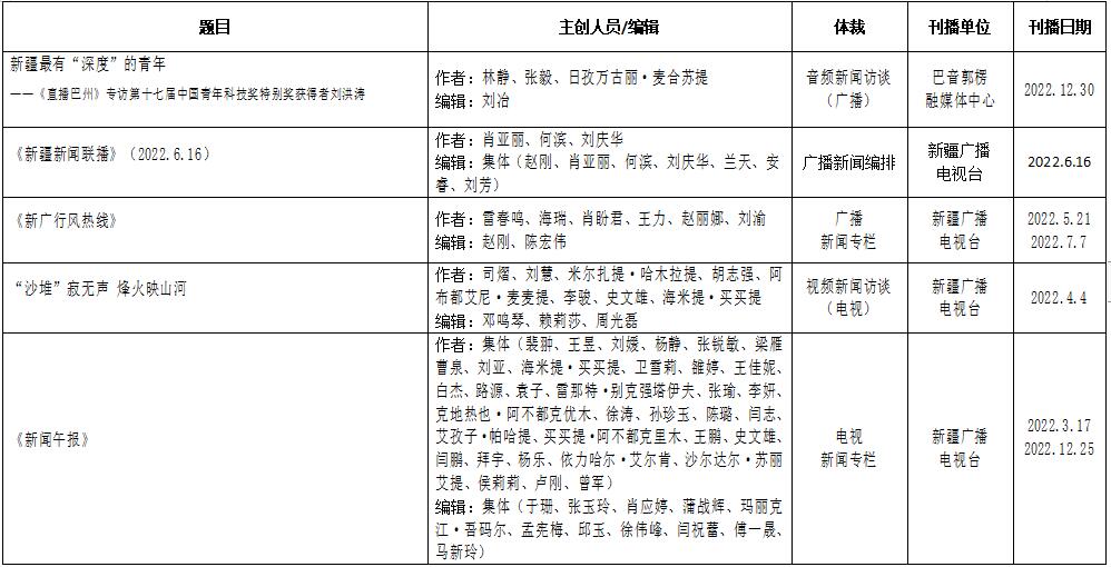 新疆記協(xié)推薦參加第33屆中國新聞獎(jiǎng)音視頻新聞訪談、音視頻新聞直播、廣播電視新聞編排、廣播電視新聞專欄作品初評(píng)作品的公示