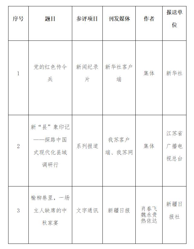 根據(jù)第34屆“中國新聞獎”委托初評辦法工作通知要求,新疆大學新聞與傳播學院第34屆“中國新聞獎”初評委員會對收到參評作品進行了評審,最終評委一致通過《黨的紅色傳令兵》等3件作品參加第34屆“中國新聞獎”的評選。現(xiàn)予以公示,公示日期為2024年5月22日至2024年5月28日。歡迎社會各界監(jiān)督,如有意見,可向新疆大學新聞與傳播學院“中國新聞獎”初評委員會反映。