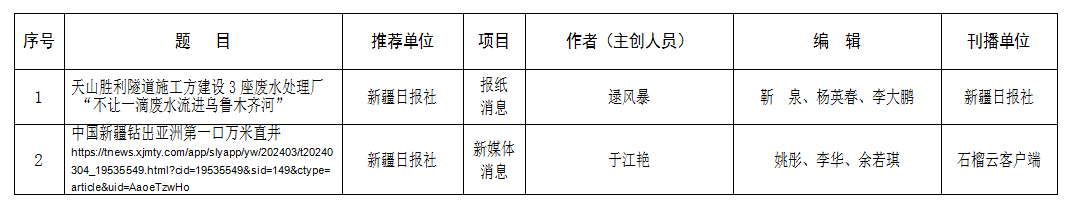 新疆日?qǐng)?bào)社(新疆報(bào)業(yè)傳媒<集團(tuán)>有限公司)推薦參加第35屆中國(guó)新聞獎(jiǎng)(自薦作品初評(píng))作品的公示