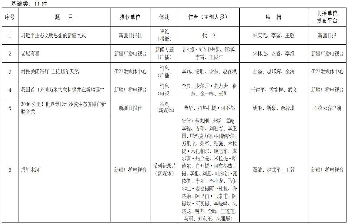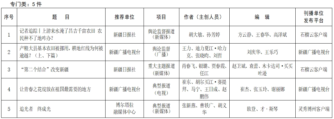 新疆記協(xié)推薦參加第35屆中國新聞獎參評作品公示