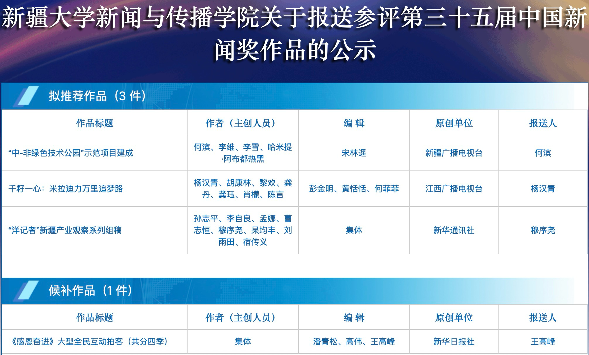 新疆大學(xué)新聞與傳播學(xué)院關(guān)于報(bào)送參評(píng)第35屆中國(guó)新聞獎(jiǎng)作品的公示