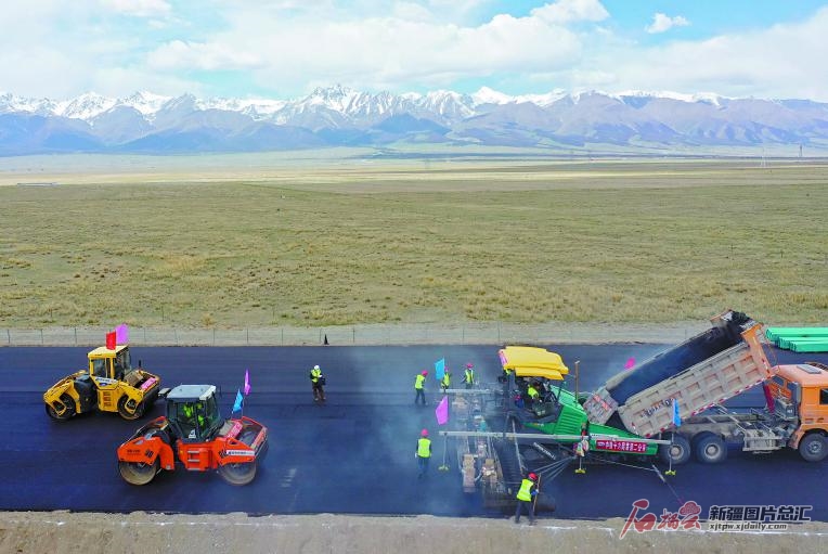 5月20日,工人在京新高速哈密市松樹塘出口端鋪油。當(dāng)日,隨著京新高速“最后一公里”伊吾至巴里坤段鋪油完成,京新高速主線全線鋪通,工程進(jìn)入收尾階段,預(yù)計(jì)在下月建成通車。 天山網(wǎng)-新疆日?qǐng)?bào)記者蔡增樂 攝