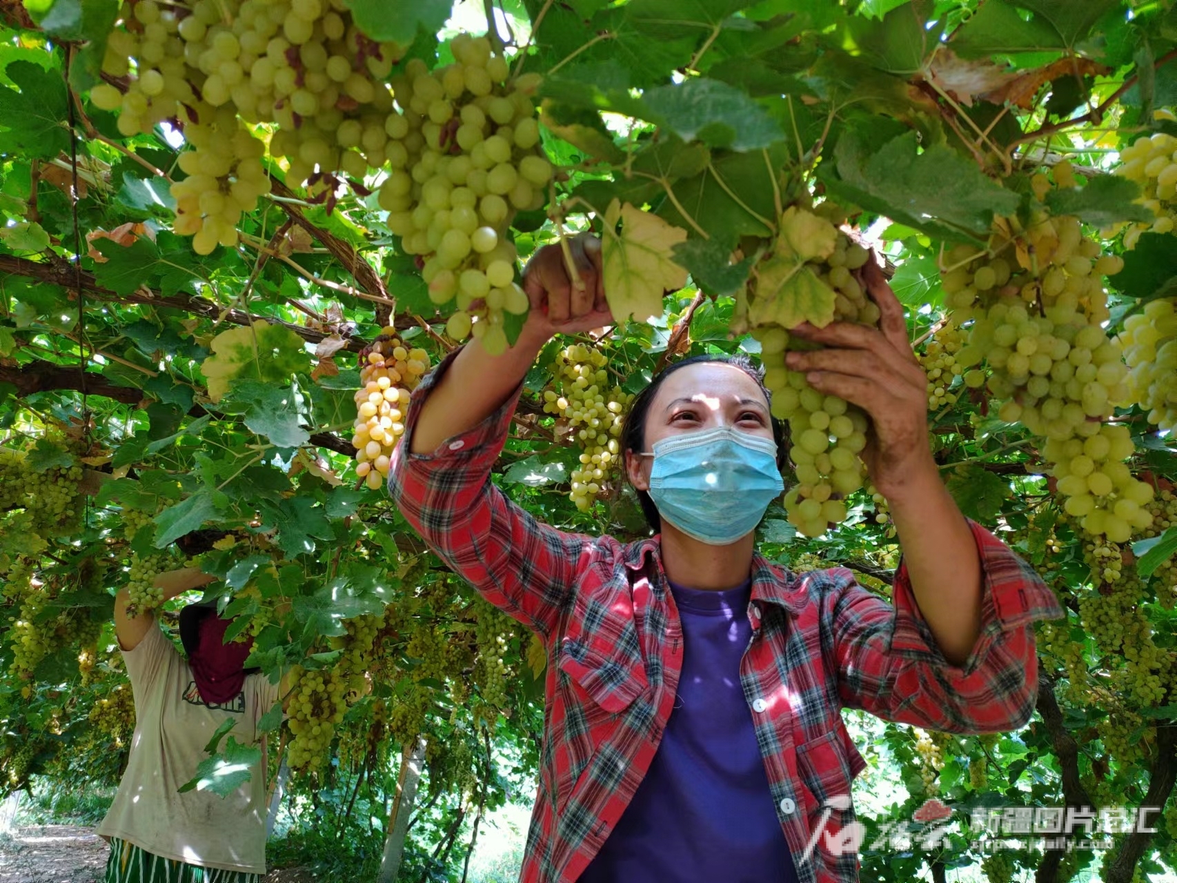 2022年8月,吐魯番市高昌區(qū)葡萄鎮(zhèn)布拉克村的種植戶正在采摘葡萄。劉健 攝