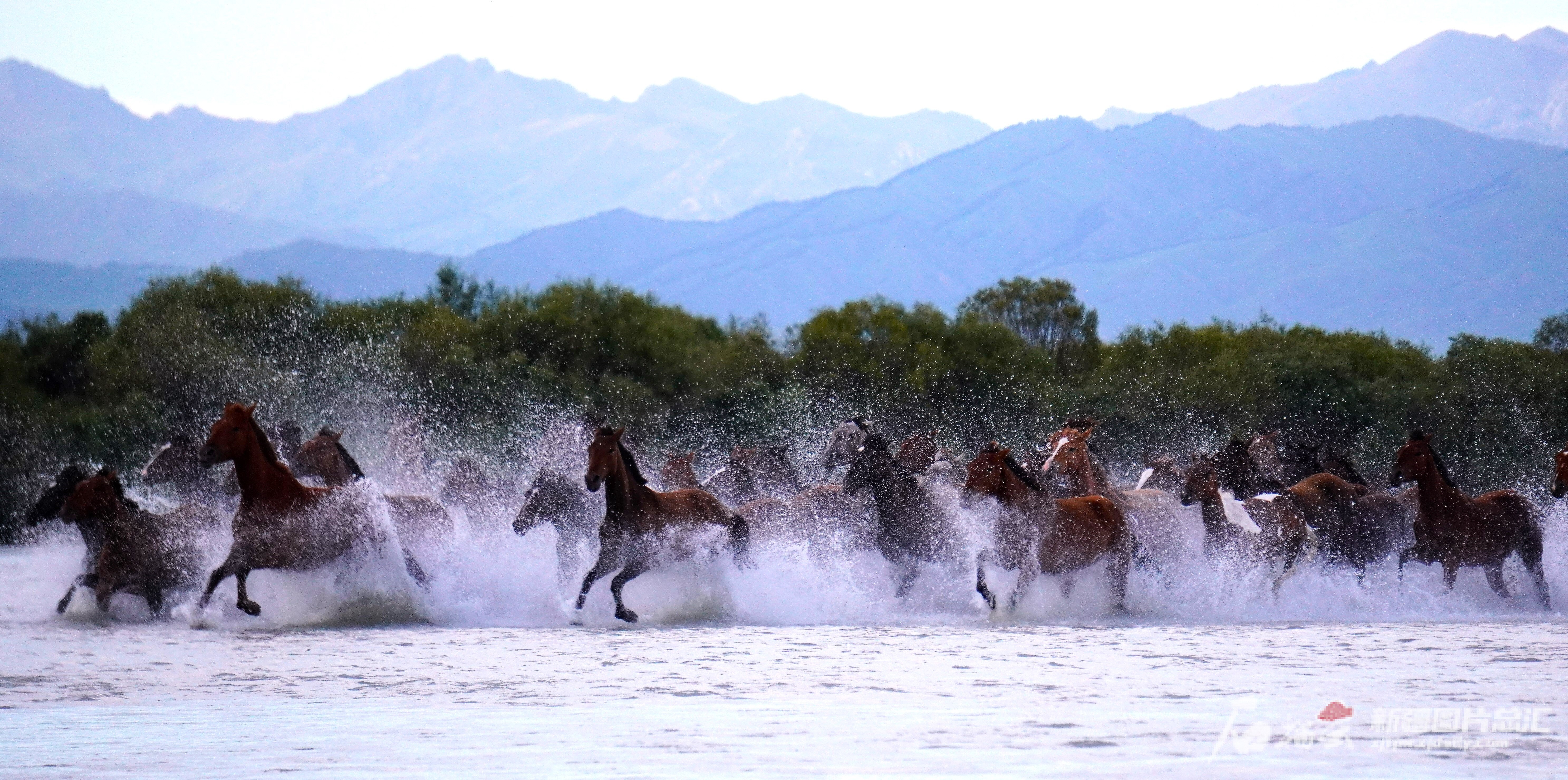 2022年7月15日,在昭蘇縣濕地公園進(jìn)行的天馬浴河表演。天山網(wǎng)-新疆日?qǐng)?bào)記者 巴莎·鐵格斯 攝
