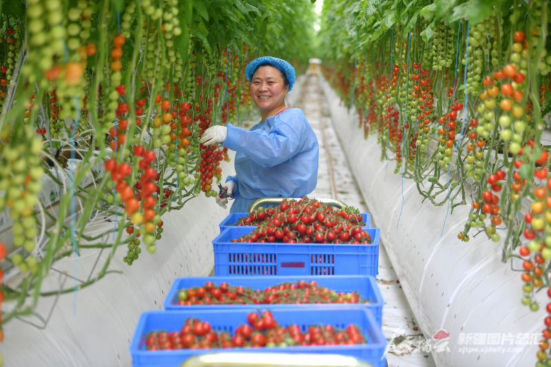 4月22日,工作人員在霍爾果斯現(xiàn)代農(nóng)業(yè)科技產(chǎn)業(yè)園智能溫室內(nèi)采摘西紅柿。眼下,霍爾果斯現(xiàn)代農(nóng)業(yè)科技產(chǎn)業(yè)園210畝智能溫室進(jìn)入西紅柿采摘期,該園種植八個(gè)特色品種西紅柿,采用農(nóng)業(yè)科技的無(wú)土栽培、自動(dòng)化、智能化種植技術(shù),產(chǎn)品銷(xiāo)往全國(guó)各地。天山網(wǎng)-新疆日?qǐng)?bào)記者 鄒懿攝
